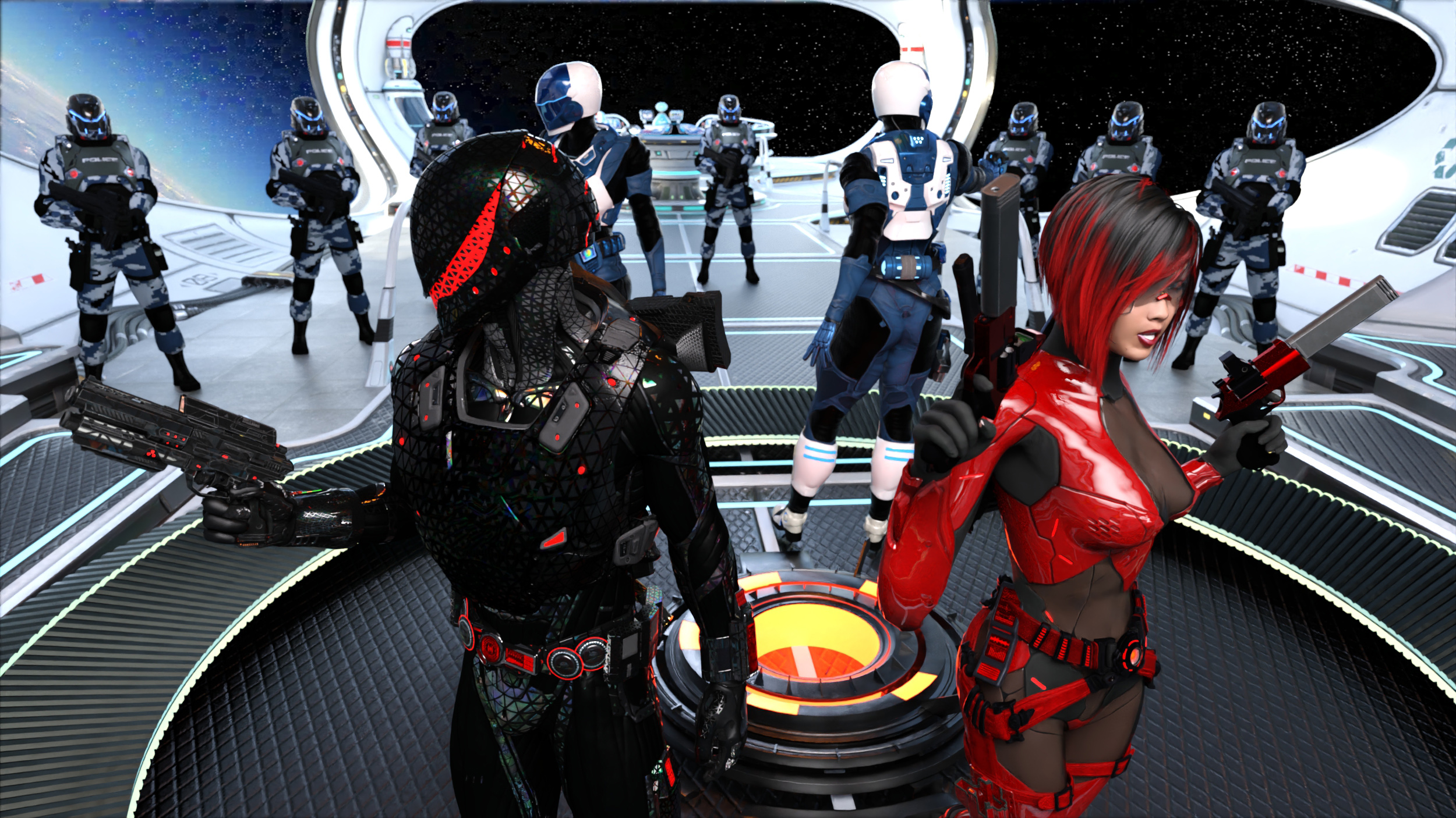 It starts with a tremor. Not physical—no quake, no impact—but a shift in the air. A pressure change. Like the station itself is bracing for something. I’m reviewing the latest scan reports when a tight-band signal pings directly into my helmet. Synthea’s voice, calm but edged with urgency. “Master. Incoming anomaly.” I look up at the tactical display. No ships. No transponders. Just a distortion—space folding inward like a collapsing lung. A ripple of unreality. And then they’re here. They don’t dock. They manifest. A corridor that was empty seconds ago now holds a formation of armored figures—tall, angular, flickering between dimensions. Their armor shifts colors and textures as if reality can’t decide what they should look like. Their insignia is unreadable, constantly rewriting itself. Riftwalkers. Extradimensional enforcers. The kind that show up when the universe itself files a complaint. The moment they appear, their scanners activate—lances of shifting light sweeping the corridor. And instantly, every one of their instruments screams. A cascade of alarms erupts from their armor, their weapons, their sensor packs. Their visors flare with warning glyphs. Several of them snap into combat stances, weapons raised—not at the station, not at the lab equipment, but at me. Because of course they do. My armor, my rifle, my pistol, my sword—every piece of gear I carry contains extradimensional storage matrices. But that’s not what’s setting them off. It’s the signature. The unmistakable, impossible-to-forge imprint of the one who forged them. Synthea’s voice hits my comms again, sharp and immediate. “Master—your equipment is broadcasting a high-tier dimensional imprint. They recognize the origin.” I don’t respond. I don’t have to. The Riftwalkers already know. Their formation wavers—just slightly, but enough to betray something I’ve never seen from them before. Hesitation. The lead Riftwalker steps forward, visor flickering violently as it tries to reconcile my presence. “High Justiciar,” he says, voice layered and distorted. “You carry… artifacts.” His tone shifts. Not hostile. Not accusatory. Careful. I keep my voice level. “Standard issue for my rank.” “That is not standard,” he replies. “Those items bear the mark of—” He stops. The entire squad freezes. No one says the name. No one dares. Even speaking it aloud in this reality could cause panic, or worse—draw attention. Synthea steps forward, her voice now audible. “His equipment is stable. Controlled. And none of it is connected to the station’s breach.” The Riftwalker’s visor pulses. “We will verify.” “You’ll do it without pointing weapons at me,” I say. A tense moment passes. Then, slowly, their weapons lower—but their scanners remain locked on me, tracking every micro‑shift in my dimensional signature. Then one of their techs—if you can call something with three overlapping silhouettes a “tech”—speaks from a terminal. “Resonance spike detected. Sector seven.” The lead Riftwalker turns to me. “What is in sector seven?” Synthea’s voice hits my comms instantly. “Master—frequency modulator array. The gateway.” I answer aloud. “That’s where they housed the dimensional modulator.” The Riftwalker’s armor ripples. “Then the breach is active.” I exhale slowly. “And it’s waking up.” |